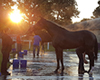 Multiple Graded Stakes Winner DISPOSABLEPLEASURE Turned Out for Sixty Days Midway, KY—John Greathouse announced today that 2013 Sixty Sails H.-G3 winner Disposablepleasure was examined by Dr. Larry Bramlage after her disappointing fourth place finish in Monday's Grade I Ogden Phipps S. at Belmont. "Dr. Bramlage found a semi-lunar distal cannon bone fracture of the articular surface and a villonodular mass in the front of the fetlock joint," commented Greathouse. "She's home here at Glencrest, we will evaluate her in 60 to 90 days and see if a comeback is possible." |